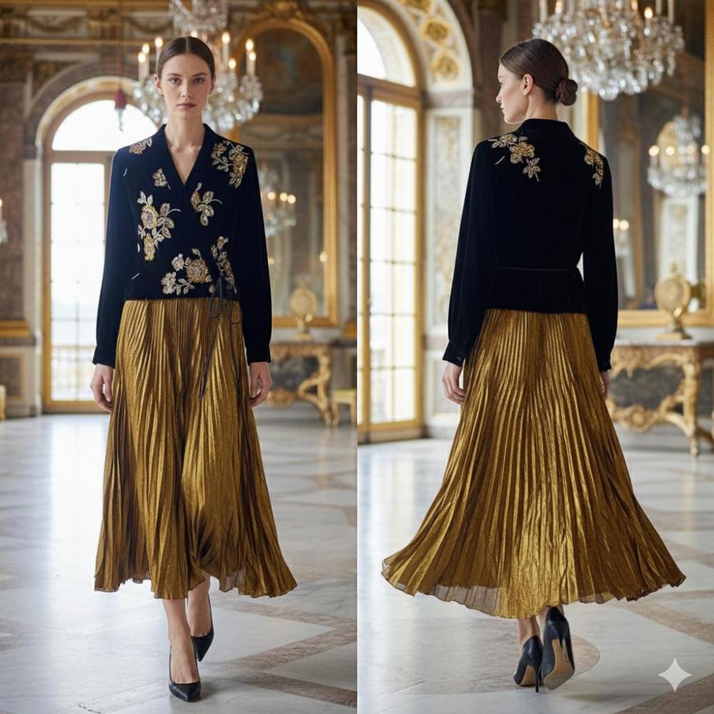 تنورة وبلوزة مخمل الجاكيت مزين بالشك